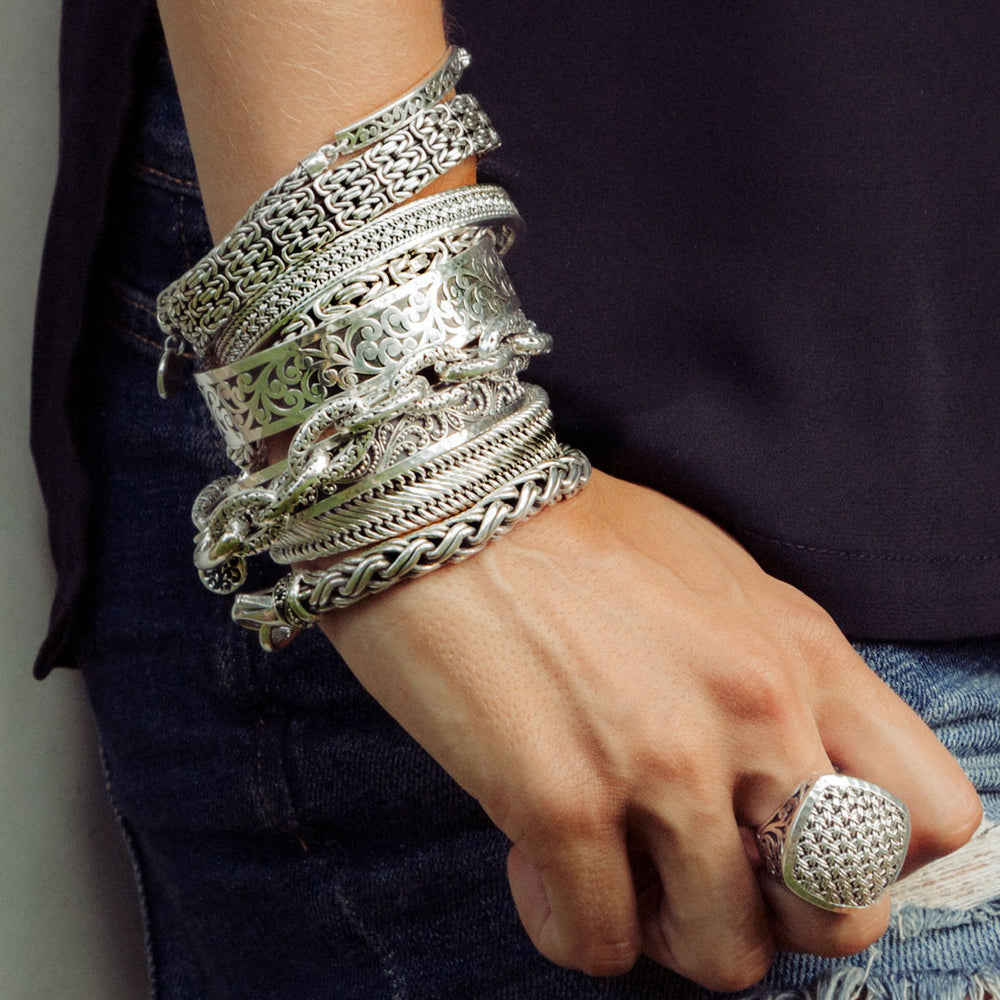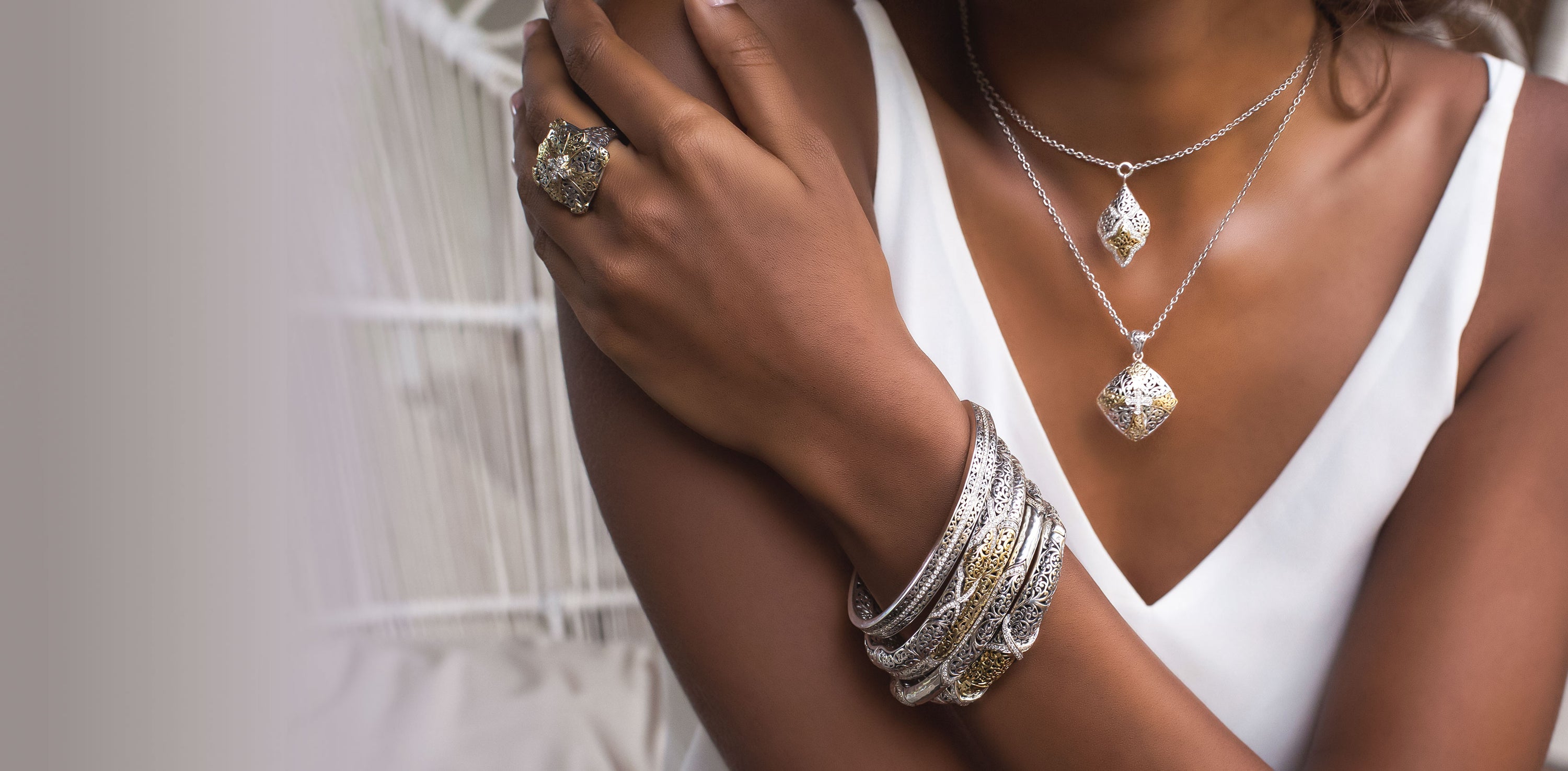 Reaching back through centuries and around the globe, designer Lois Hill unearths the past while infusing the contemporary, creating a collection of sterling silver jewelry that is truly timeless. Ancient ruins, classic museums, a 17th century bracelet, or a woven basket from an open-air market in Egypt – the mundane as well as the extraordinary – these serve as her inspiration. Each piece she creates reflects months of study, interpretation and refinement. Lois Hill is known for her unique and original infusions of ancient and contemporary arts, spanning centuries and continents.